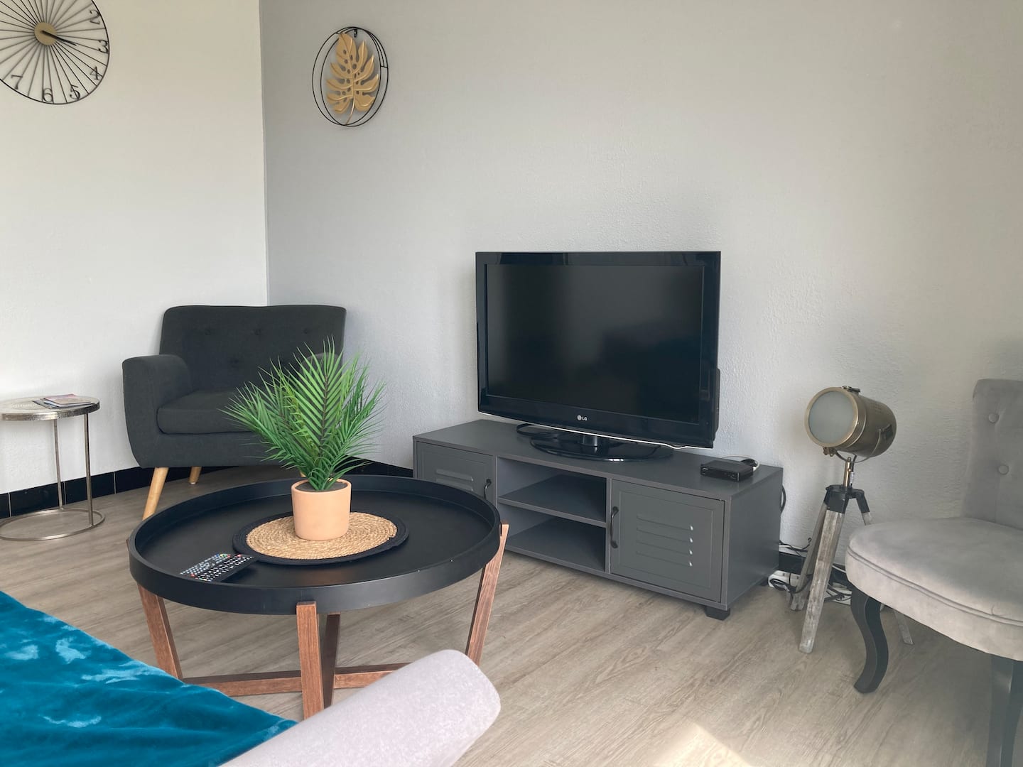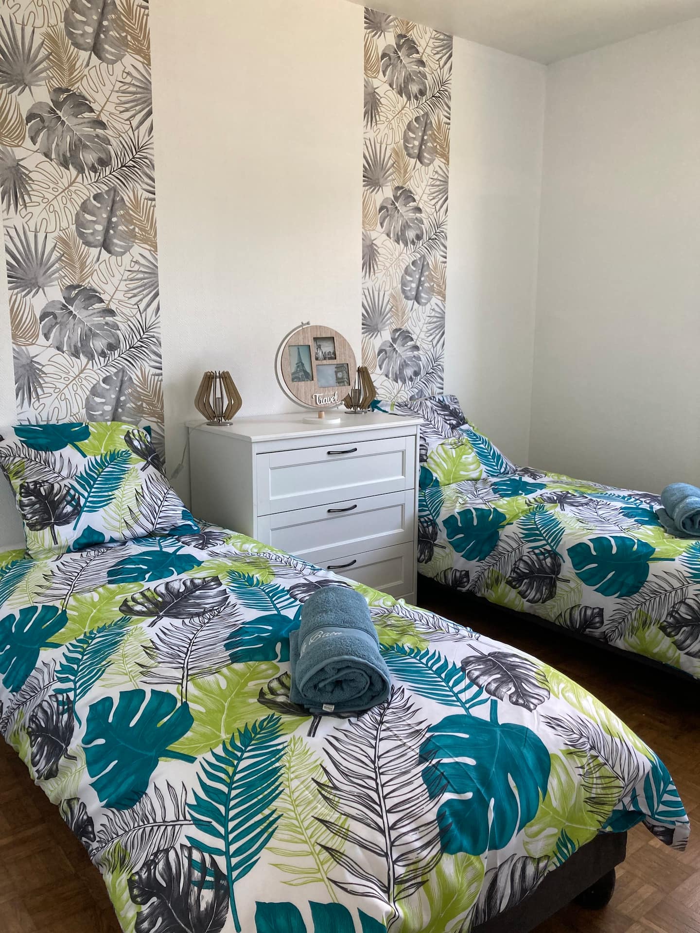 Deux chambres et un salon séjour équipé d’un canapé convertible.