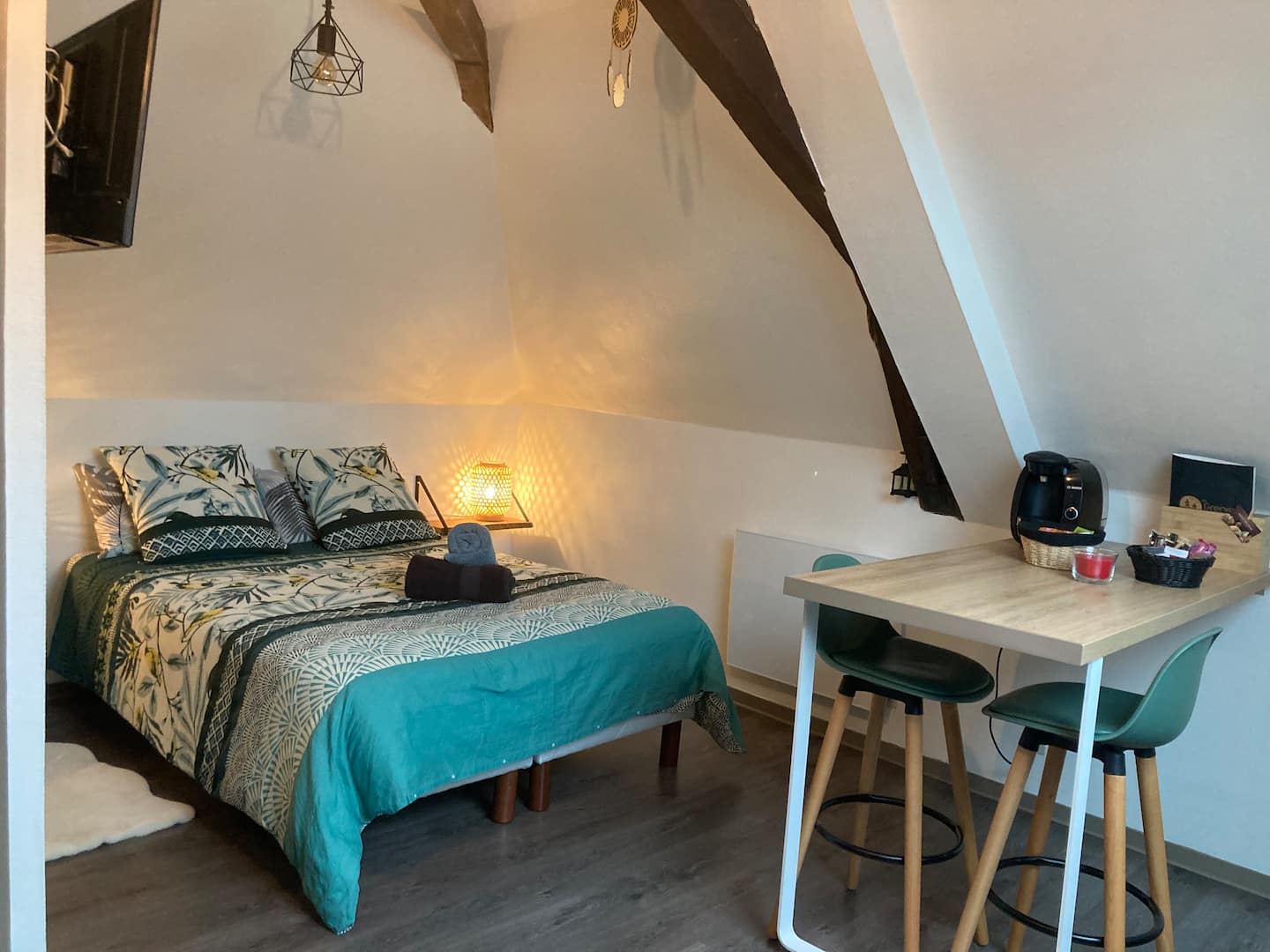 Ce studio se compose d un lit double avec une literie de qualité pour votre bon confort. Il est équipé d'une petite cuisine avec un plan snack. Vous disposez aussi d'un espace détente ou lecture pour vous ressourcer en toute tranquillité.